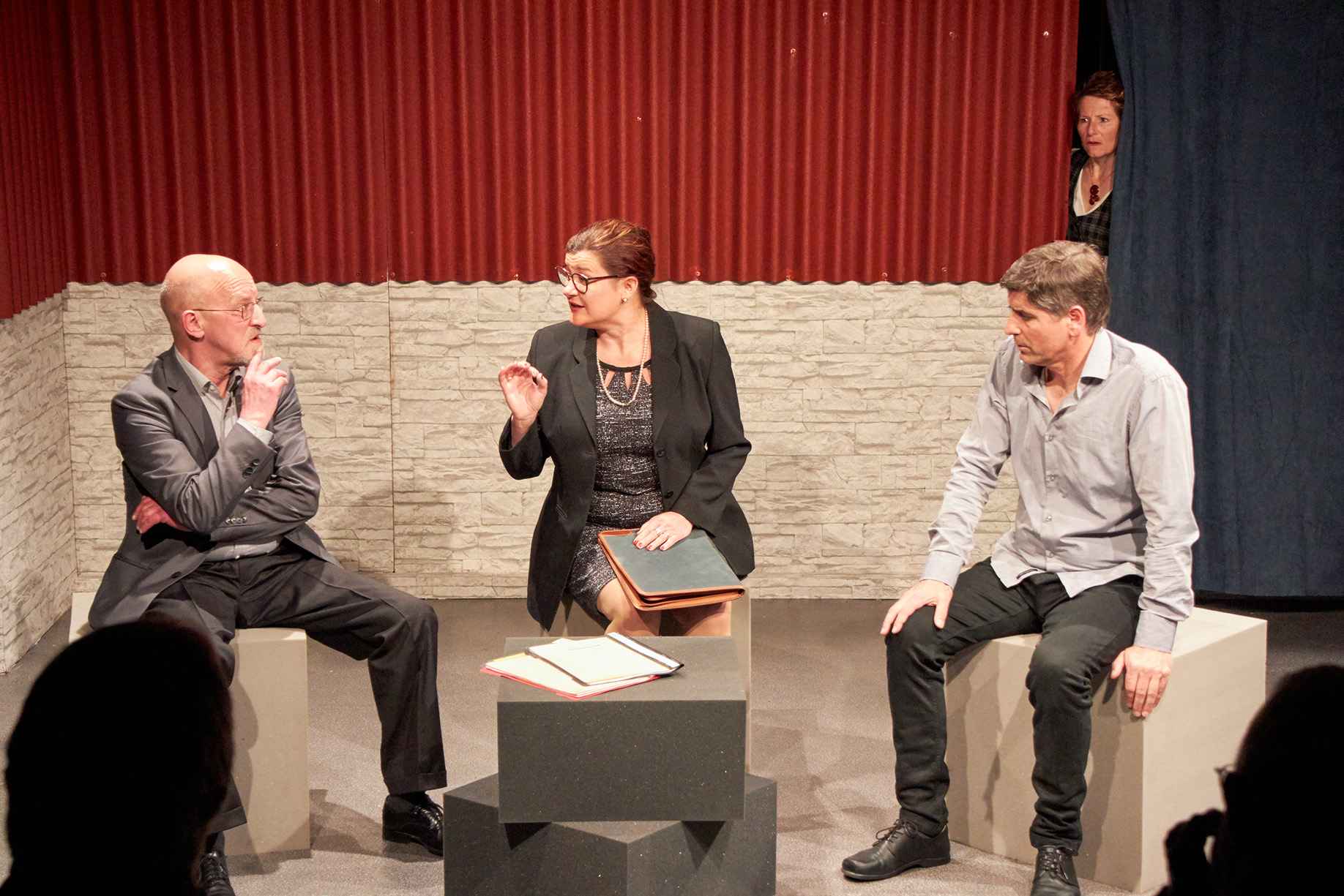 Alle Fotos von Hermann Maria Gasser (c), aufgenommen am 22.3.2019. Es spielen: Claudia Antenhofer, Sonja Ellemunt, Angelika Plank, Rudolf Beikircher, Peppe Mairginter, Wolfgang Michor; Regie: Alfred Meschnigg